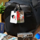 Sophie, Daphne, Felix und Kirin projektieren prächtige Posen für ein Familienporträt. Bunter Gepäckanhänger hilft Ihrer Tasche, heraus zu stehen. Rückseite kennzeichnet BunnyLuv Logo. Eine große Weise, Ihre Liebe der Häschen zu kombinieren und zu reisen!
