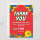Diese fröhliche Dankeskarten wurden erstellt, um den großen Tag Ihres kleinen Erbauers mit einem Lächeln abzurunden. Inspiriert von hellen Blockmustern und spielerischen Farben, fügt sie Ihrer Dankbarkeit eine lustige Note hinzu. Perfekt, um warmen Dank an Gäste zu senden, die dazu beigetragen haben, die Feier unvergesslich zu machen!