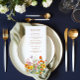Das bunte "Wild Blume Country Wedding Menu" bietet Ihnen hübsche Blume in Orange, Gelb, lila und Rosa auf weißem Hintergrund. Personalisieren Sie den Text in den Textfeldern, indem Sie ihn bearbeiten. Entwickelt für Sie von ©Evco Studio www.zazzle.com/store/evcostudio
