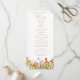 Das farbenfrohe Country Wedding Program beinhaltet hübsche Country-Blume in Orange, Gelb, lila und Rosa auf weißem Hintergrund mit Ihrer Zeremonie auf der Front und Hochzeitsfeier und danke Ihnen auf der Rückseite in der modernen Goldkalligraphie-Skript. Personalisieren Sie den Text in den Textfeldern, indem Sie ihn bearbeiten. Für Sie entworfen von Evco Studio www.zazzle.com/store/evcostudio