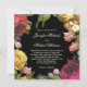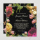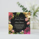Eine farbenfrohe Kombination von Blumenelementen in Elfenbein, Rot, Magenta, Rosa und Grün über einem schwarzen Hintergrund dieser maßgeschneiderten Hochzeitseinladung. Die Farben funktionieren zu jeder Jahreszeit gut. Geben Sie Ihre Daten anstelle des Beispieltextes ein. Um Schriftart zu ändern oder den Text nach Bedarf zu verschieben, wählen Sie den Button "Anpassen". Die schönen Blume in diesem Design wurden mit einer Kombination von Blumenkomponenten erstellt, die unter www.createthecut.com lizenziert sind. Diese Einladung ist auch mit weißem Hintergrund erhältlich.