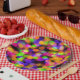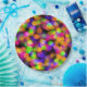 Helles und buntes, buntes, mehrfarbiges Bauchmuster. Durchsichtige Blasen.