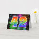 Die Front dieses Aufregens, Spaßes und vibrierenden GrußkartenAusrüstungsbeschreibungen, die bunte celebratory Feuerwerke sind, inspirierte Muster, zusammen mit der Nr. "42", einen mehrfarbigen Regenbogen wie Steigungsmuster, auf einem Schwarzes farbigen Hintergrund kennzeichnend. Die inneren Eigenschaften eine kundengerechte Grußmitteilung oder konnten möglicherweise geklärt werden und verlassener freier Raum, wenn eine Mitteilung eigenhändig stattdessen geschrieben werden soll. Eine Grußkarte so wäre möglicherweise eine Spaßweise, jemand zweiter Geburtstag vierzig oder möglicherweise der zweite Hochzeitstag eines Paares vierzig zu feiern oder irgendein anderes 42. Ereignis. [~Z0000342]