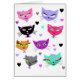 Katzen-Cartoons im Rosa und im Blau und Graues und Schwarzes und aquamarines. Wenig Herzen auch. Entzückend.