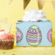 Eine lustige Osterpackung zum Thema Geschenke. Mit bunten Ostereiern auf blauem Hintergrund. Ideal für Kinder Geschenke.