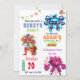 Farbenfrohe Roboter Kindergeburtstag Party Einladung mit niedlichen kleinen Robotern mit lebendiger Typografie vor weißem Hintergrund.