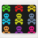 Bunter abstrakter Schädel- und Knochentapetenentwurf. Die Farben stehen heraus gegen den schwarzen Hintergrund reizend.