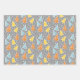 Farbenfrohe Weihnachtsbäume "Frohe Weihnachten" und Schneeflocken Urlaub Wrapping Paper Sheet. Ein Blatt zeigt ein niedliches Muster von bunten Weihnachtsbäumen in hellblau, orange und gelb auf grau oder grau. Der zweite enthält Schneeflocken und der dritte den Text "Frohe Weihnachten" in fett formatierten Typogtaphy. Personalisieren Sie es mit Ihrem Text. Bitte beachten Sie, dass, wenn Ihr Text mehr oder weniger Platz benötigt, er so angepasst wird, dass er die Textgröße entsprechend vergrößert oder verringert.