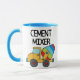 Ein bunter Zementmischer von Blauem, von Rotem, von Grünem und Gelb und Text, der "Zement-Mischer" auf T - Shirts, Schellfische, Bodysuits, Taschentaschen, Magneten und andere Einzelteile liest, die für Kinder groß sind, die wie große Baufahrzeuge.