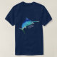 Fischen Promot-shirt, mit Grafiken großen bunten Schwertfische und des weißen kundenspezifischen Textes. Personifizieren Sie den Text, auf der Front und der Rückseite des Shirts, um zu lesen was Sie wollen. Groß als Werbung, Andenken und Geschenke.