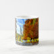 Dieses landschaftliche Foto kennzeichnet einen natürlichen Fluss mit felsigem Ufer und eine schöne und bunte Mischung der bernsteinfarbigen, grünen und roten Waldfallbäume in der Herbstjahreszeit! Heben Sie eine dieser landschaftlichen Schönheits-Foto-Tassen heute auf! Es ist einfach, den Text, den Schriftart, die Größe und die Farbe mit zur Verfügung gestellter fillable Schablone besonders anzufertigen. Machen Sie diese Tasse etwas speziell!