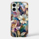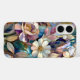 Schöne iPhone-Hülle mit einem lebendigen, bleiglasartigen Blumenmuster in reichen Blautönen, Violett, Rosé und eleganten goldenen Akzenten. Die mehrschichtige Komposition erzeugt einen leuchtenden, künstlerischen Look, der sowohl kühn als auch raffiniert wirkt.