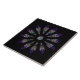 Ein reizendes Muster des befleckten Glases schmückt diese Keramikfliese in den dominierenden Farben von Lila, von Blauem, von Gelbem und von Schwarzem. Zwölf abstrakte Federn kreisen eine zentrale Maske ein, um einen geistigen Mandalaentwurf mit einer Empfindlichkeit des gebürtigen Amerikaners zu bilden.