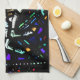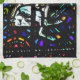 Ein Geschirrtuch, das einen Buntglas Pegasus-Entwurf kennzeichnet.