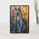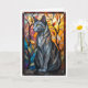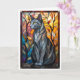 Buntglas-Stil Graue Katze mit Blättern Karte