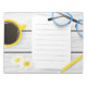 Gardez vos pensées organisées et votre bureau à l'air élégant avec ce design de bloc-notes délicieux! Doté d'une confortable illustration haut de gamme d'une tasse à café jaune, de marguerites gaies, de lunettes à mailles bleues et d'un crayon sur un arrière - plan à grains de bois clair, ce bloc-notes ajoute une touche créative et chaleureuse à votre planification quotidienne. Idéal pour accéder à des listes de tâches, des rappels ou des idées créatives. Un cadeau de papeterie parfait pour les amateurs de café, les écrivains, les enseignants ou toute personne qui aime un espace de travail calme et accueillant.