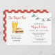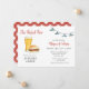 Rustique chic peint à la main aquarelle Burger et Bière illustré couples invitation douche avec motif rouge et blanc en vichy dans le dos.