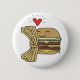 Niedlicher Cartoon eines Cheeseburgers, der ein Bündel Fischrogen umarmt.