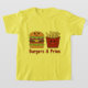 Digital-Cartoonbilder eines Cheeseburgers und ein Auftrag der Fischrogen mit niedlichen Gesichtern. Unter ihnen ist die Phrase "Burger und Fischrogen"