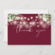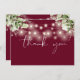 Mit einer zarten Blumengrün, hübschen Saitenleuchten und einem eleganten Dankeschön-Script auf bordeauxrotem Hintergrund. Sie können mit Ihrer eigenen Danksagung auf der Rückseite personalisieren, oder wenn Sie es vorziehen, Ihre handgeschriebene Nachricht hinzuzufügen, löschen Sie den Text. Ein perfekter Weg, um Ihnen zu danken! Entwickelt von Thisisnotme©