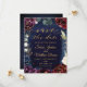Eine Mischung aus tiefbordeauxroten und violetten Blumen mit schimmernden goldenen Konturen und einem dunkelblauen, marineblauen Wasserfarbenwaschgang, geküsst mit Goldspinnen.