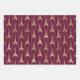 Vintages Pariser Modepapier mit Bordeaux- und Goldmuster, bestehend aus Eiffelturm, Harlequin- und Gitterkronen.