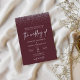Die Einladung zum Hochzeitsfeiern in Burgund und Silber Glitzer - eine klassische und doch glamouröse Wahl für Ihre Winterfeier. Diese Einladung besticht durch die Farbtöne des reichen Marons und der roten Bordeaux, die durch subtiles, glitzerndes Silber ausgeglichen werden. Sie vereint Eleganz und Romantik. Elegantes Kraftpapier wird mit einer Schicht aus feinem silbernen Glitzer Konfetti verschönert, die genau die richtige Menge an winterlichen Funkeln hinzufügt. Ihre Monogramme oder Initialen werden in einem Vintag inspiriert Skript-Schriftart für eine formale, aber spielerische Touch angezeigt. Ob Ihre Hochzeit in Urlaubsort in einer schneebedeckten Landschaft oder unter karibischen Stars stattfindet, diese Einladung Set für eine klassische Schönheit. Mit seinem subtilen Glanz und seinen schimmernden Tönen fühlen sich die Gäste zu ihrer romantischen Khob Hochzeit befördert. Lassen Sie sich nicht von der ausgewogenen Kombination aus moderner Einfachheit und glänzender Glam verzaubern. Stilvolles Rot und Silber machen es perfekt für Ihre Winterfeier.