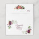 Die Blume sind mit böhmischen, boho-farbenen Rose geschmückt und in Bordeaux gehalten. Eleganter weißer Hintergrund. Vorlagen für Namen und Hochzeitstermin. Die Namen sind mit einem modernen und eleganten Handschrift geschrieben. Burgund farbige Buchstaben. Zurück: Platz für Sie, um von Hand den Namen Ihrer Gäste und Tischnummer zu schreiben. Innen: bordeauxfarben.