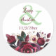 Burgunder Blume, Blätter und Perlen Personalisiert Runder Aufkleber