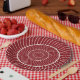Cream fibonacci Sequenzspirale ähnelt einer Schnecke auf bordeauxrotem Hintergrund Eine einzigartige Geschirr-Option für Ihr nächstes Party in den Ruhestand oder Mathematik.