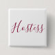 In chic button, this design feature "Hostess" written across the front in burgundy calligraphy. The white background can be change into a variety of colors. Shop your button today!