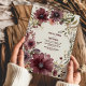 Erleben Sie das Wesen Ihrer Herbsthochzeit mit unserer Einladung zum Böhmerwald Boho Fall Floral Wedding. Diese Einladung verbindet Eleganz mit einer Touch böhmischen Charmes und Set die Bühne für ein unvergessliches Fest. Die tiefen, reichen Bordeaux-Töne erinnern an die Wärme und Schönheit des Herbstes und sorgen für einen besonderen Tag. Jede Karte ist mit feinen Blumenmustern gestaltet und lädt Ihre Gäste in eine Welt der Romantik und der Natur ein. Die zarten Details und die kräftigen Farbtöne der Herbstsonntage sorgen für ein visuelles Erlebnis. Diese Einladung vermittelt nicht nur die wichtigen Details Ihrer Hochzeit, sondern bietet auch einen Einblick in die von Ihnen geplante bezaubernde Veranstaltung. Die hochwertige Kartonhalle sorgt für Langlebigkeit und ein luxuriöses Ambiente, was Ihre Einladung zu einem gepflegten Sake macht. Jedes Stück ist sorgfältig gefertigt, um Ihren einzigartigen Stil widerzuspiegeln und so die Vorfreude und Spannung für Ihren großen Tag zu erhöhen. Verabschieden Sie sich von generischen, uninspirierten Einladungen. Unsere Einladung zur Hochzeit in Burgund Boho Fall Floral bringt eine persönliche Touch, die Ihren Gästen ein ganz besonderes Gefühl gibt. Die Kombination aus boho chic und herbstlicher Eleganz ist ideal für Paare, die ihre Hochzeit so einzigartig gewollt haben wie ihre Liebe. Lass nicht, dass deine Hochzeitseinladungen nachgedacht werden. Machen Sie sie zu einem unvergesslichen Teil Ihrer Feier. Bestellen Sie jetzt und geben Sie Ihren Gästen etwas zu merken. Ihre Traumhochzeit beginnt mit der perfekten Einladung. Genießen Sie die Schönheit des Herbstes und den Charme des Boho Chic - machen Sie Ihre Hochzeit unvergesslich. Beginnen Sie heute. Klicken Sie hier, um Ihre Burgund Boho Fall Floral Hochzeitseinladungen zu bestellen und den Zauber Ihrer Hochzeit lassen!