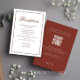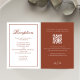 Mit dieser eleganten Empfang-Karte stärken Sie sich bei Ihrem Hochzeitsgeschenk und präsentieren ein weinrotes weinfarbenes Thema sowie eine stilvolle und elegante Palette. Diese Karte ist mit einer stilvollen Kalligraphie-Schrift und klassischer formaler Typografie gestaltet und strahlt zeitlose Eleganz aus. Mit einem QR-Code für die Details der Hochzeit leitet es die Gäste zu Ihrer Hochzeitswebsite UAWG für ein nahtloses, modernes Online-Erlebnis. Teilen Sie einfache Gastunterkünfte und wesentliche Informationen Details Web mühelos, sodass Schönheit und Funktionalität verschmelzen.