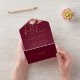 Alles in einer Hochzeitseinladung mit rustikalen Blumen und eleganter goldkalligraphischer Schrift Typografie auf bordeauxrotem Hintergrund. Die Einladung enthält zusätzliche Gastdetails und eine perforierte RSVP-Karte, die für Sie individuell adressiert oder verlassen werden kann, damit Sie die Adressdaten Ihres Gastes handschreiben können. Entwickelt von Thisisnotme©