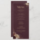 Present your wedding menu in dark, romantic style with this burgundy floral gothic wedding menu card. Featuring elegant gold typography and vintage florals, it adds a luxurious touch to your reception tables. Perfect for gothic, witchy, or fall weddings with a moody aesthetic. Fully customizable menu text. Designed to match the Burgundy Floral Wedding Suite seamlessly.