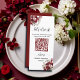 Burgundy Floral Modern QR Code Wedding Bar Menu Menükarte