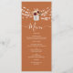 Rustikaler Charme und Eleganz verleihen Ihrem Hochzeitsempfang mit diesem wunderschön gestalteten orangefarbenen Hochzeitsmenü. Mit einem personalisierten Monogramm, farbenfrohen, bordeauxroten Blumen in Vintagen Maurerkirschen und dem sanften Glühen der Saitenleuchten bringt es Wärme und Persönlichkeit auf Ihr Tischfußboden. Dieses im Herbst inspirierte Menü mit modernen Kalligrafien eignet sich hervorragend für Hochzeiten im Herbst im Freien, im Freien oder im Boho. Lassen Sie sich von den kulinarischen Details des Hauses verzaubern, um Ihren Gästen ein unvergessliches kulinarisches Erlebnis zu bieten.