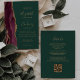 Die links Kulisse dieser modernen Hochzeitseinladung besticht durch eine bordeauxrote Aquarellgrenze mit vergoldetem Imitat-Glitzer. Der anpassbare Text kombiniert goldfarbene Handschrift, Copperplate und kursiv Schriftart auf einem smaragdgrünen Hintergrund. Die Rückseite bietet Platz für Hochzeitsdetails auf einem soliden smaragdgrünen Hintergrund, zusammen mit einem QR-Code können Gäste scannen, um Ihre Website und UAWG, die die Kosten für den Druck und Versand separater RSVP-Karten rette.