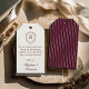 The reverse showcases a rich burgundy pinstripe pattern, adding visual depth and a tailored finish that complements classic wedding color palettes. This subtle contrast elevates the tag while maintaining a cohesive, refined style that pairs beautifully with formal tablescapes and curated wedding décor.