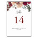 Burgundy Pink Blush Bloral Wedding Tischnummer