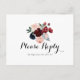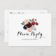 Cette carte postale rsvp à la carte florale couleur bordeaux est parfaite pour un mariage rustique. Le design se compose de pivoines roses, rousses, navales, bleues et bordeaux, de roses au feuillage vert soigneusement assemblés en bouquets élégants.
