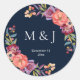 Burgundy & Plum Navy Elegant Tropical Monogram V2 Runder Aufkleber