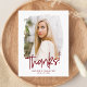 Trendy, moderne Abschluss danke Ihnen Postcard mit dem Foto des Absolventen in einem texturierten Maskenrahmen mit "Danke!" in einem bordeauxfarbenen, handgeschriebenen Drehbuch. Personalisieren Sie die Vorderseite des Abschlusses danke Postcard, indem Sie den Namen und Abschluss des Absolventen Jahr. Die Postkarte kehrt zurück, um Ihre Rücksendeadresse und benutzerdefinierte Nachricht anzuzeigen.