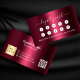 Un arrière - plan de dégradé bordeaux, texte blanc À l'avant : Ajoutez-vous une remise. Retour : Personnalisez et ajoutez votre nom, titre, numéro de téléphone, courrier, adresse de site, logo commercial, code qr à votre site Web ou compte de médias sociaux.