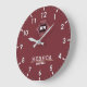 Burgundy Red and Gold Personalized Custom Monogram Große Wanduhr