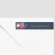 Maßgeschneiderte Hochzeitsadressen-Umhüllung um Etiketten mit bordeauxrotem Blumenmuster und Blattdesign mit goldenem Text auf dunklem Marinestuden.