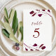 Burgundy Red Foliage Wedding Tischnummer