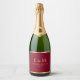 Custom Monogram Elegant Simple Save the Date Glamour Gold Text Template Burgundy Red Sparkling Wine Bottle Label.