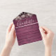 Das Ganze in einer Hochzeitseinladung mit hübschen Saitenlichtern, Maurerkirschen, prächtigen Stilbezeichnungen und schicker Typografie auf bordeauxrotem rustikalem Holzboden. Die Einladung enthält eine perforierte RSVP-Karte mit QR-Code. Entwickelt von Thisisnotme©