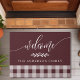 Burgunder und weißer Buffalo Karo willkommen Personalisiert Doormat. Personalisieren Sie dieses individuelle Design mit Ihrem eigenen Familiennamen.